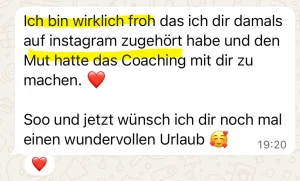 Ich hatte mich komplett verloren. Erst als ich wirklich losgelassen habe, konnte ich neu anfangen. Heute bin ich glücklich verheiratet, habe mein zweites Business aufgebaut und lebe das Leben, das ich mir immer gewünscht habe.